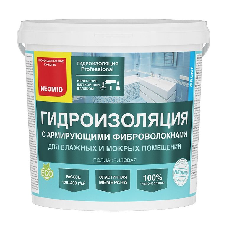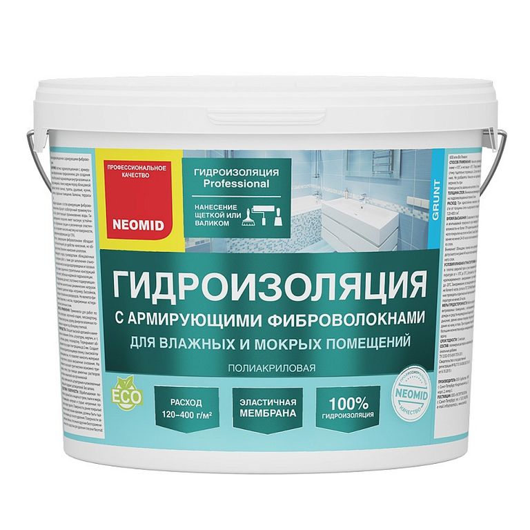 Мастика гидроизоляционная с армирующими фиброволокнами предназначена для создания сплошной бесшовной гидроизоляции внутри влажных и мокрых помещений, а также снаружи перед облицовкой кафельной плиткой: ванные, туалеты, душевые, кухни, прачечные, подвальные помещения, балконы, террасы и т.д.
