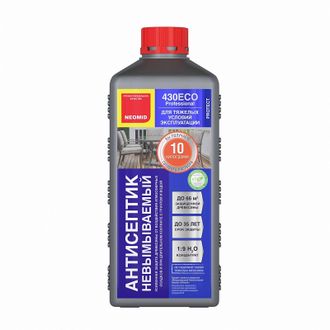 NEOMID 430 ECO — консервирующий невымываемый антисептик для наружных и внутренних работ. Обеспечивает максимальную защиту древесины различных пород в тяжелых условиях эксплуатации, в том числе при длительном контакте с грунтом и влагой.