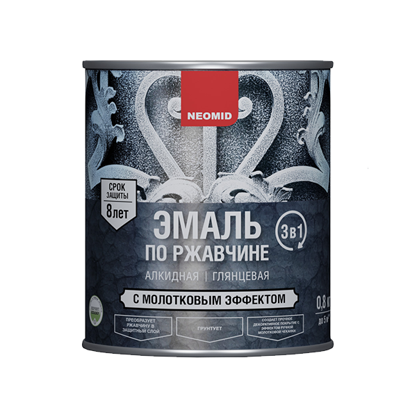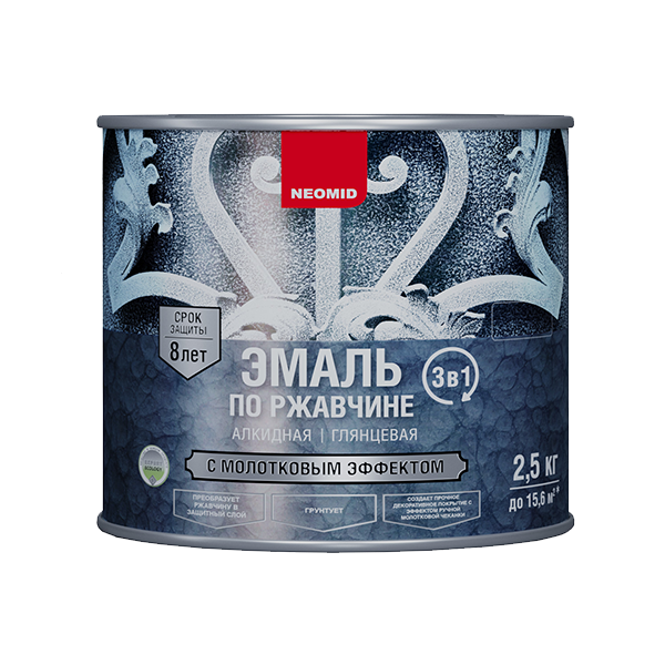 3 В 1: преобразует ржавчину в защитный слой, грунтует, создает прочное декоративное глянцевое покрытие c эффектом ручной молотковой чеканки.