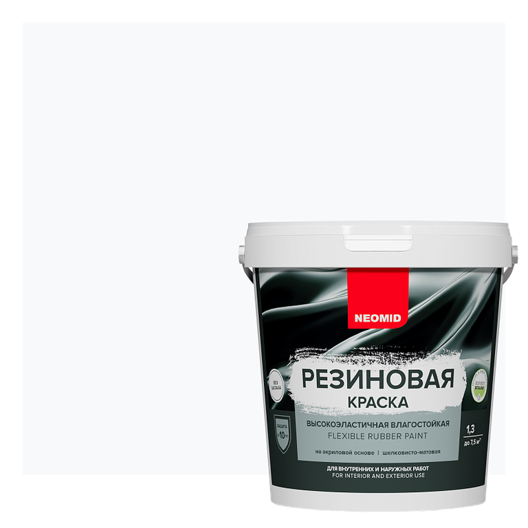 Краска резиновая NEOMID предназначена для защитно-декоративной окраски крыш, водосточных систем, заборов, фасадов зданий, фундаментов, а также стен, потолков, декоративных элементов в помещениях сухих и повышенной влажности (кухни, ванные комнаты, подвалы).